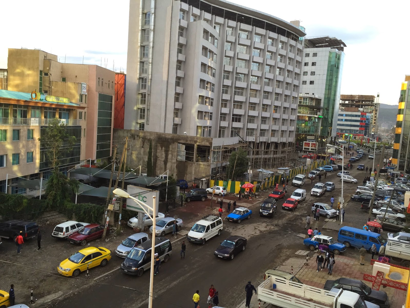 En sem betur fer sló ég til og það er töluverð upplifun að koma til Addis Ababa. Eþíópíumenn eru 90 milljónir og þar af búa 4.5 milljónir í höfuðborginni. Flugfélagið þeirra, Ethiopian Airlines, er ört vaxandi og með nýjan flota glæsilegra flugvéla, ég flaug með Boeing 787 dreamliner. Hér er gríðarleg uppbygging. Lífskjörin í borginni eru mun betri en á landsbyggðinni en í borginni má sjá töluverðar andstæður sem endurspeglast til dæmis í bílaflórunni; hér eru lúxusbílar og eldgamlar lödur. Umferðin er býsna kaotísk, ég hef enn ekki séð umferðarljós en allt gengur þetta nú upp samt og allir komast sína leið. Hvert sem litið er í borginni má sjá uppbyggingu, hálfbyggð hús hér og þar en innviðirnir eru fátæklegir; göturnar eru holóttar, engar gangstéttar eru við götuna þar sem hótelið mitt er og hér ægir öllu saman í einni kös, allskonar bílum, fólki og ég hef jafnvel séð kýr á vappi í borginni. En ég held að Eþíópía eigi svo sannarlega framtíðina fyrir sér, núna veit ég til dæmis að landsmenn eru sjálfum sér nægir með sjálfbæra orku, þeir eiga vatnsaflsvirkjanir, vindmyllur og eru að byrja að nýta jarðhitann sem nóg er af hér í landi.