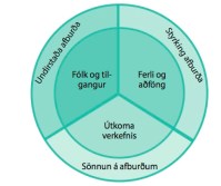 Líkanið skiptist í þrjár víddir eins og myndin ber með sér (myndin er úr nýrri bók sem ber heitið Afburðastjórnun og er eftir Agnesi Hólm Gunnarsdóttur MSc í iðnaðarverkfræði og undirritaðan). Fyrsta víddin snýst um fólkið sem tekur þátt í verkefninu og verður fyrir áhrifum af því, og grunntilgang verkefnisins. Önnur víddin snýst um sjálfa stjórnun og framkvæmd verkefnisins, og aðföngin til verkefnisins. Þriðja víddin snýst svo um útkomu verkefnisins, hvaða áhrif það hafði.