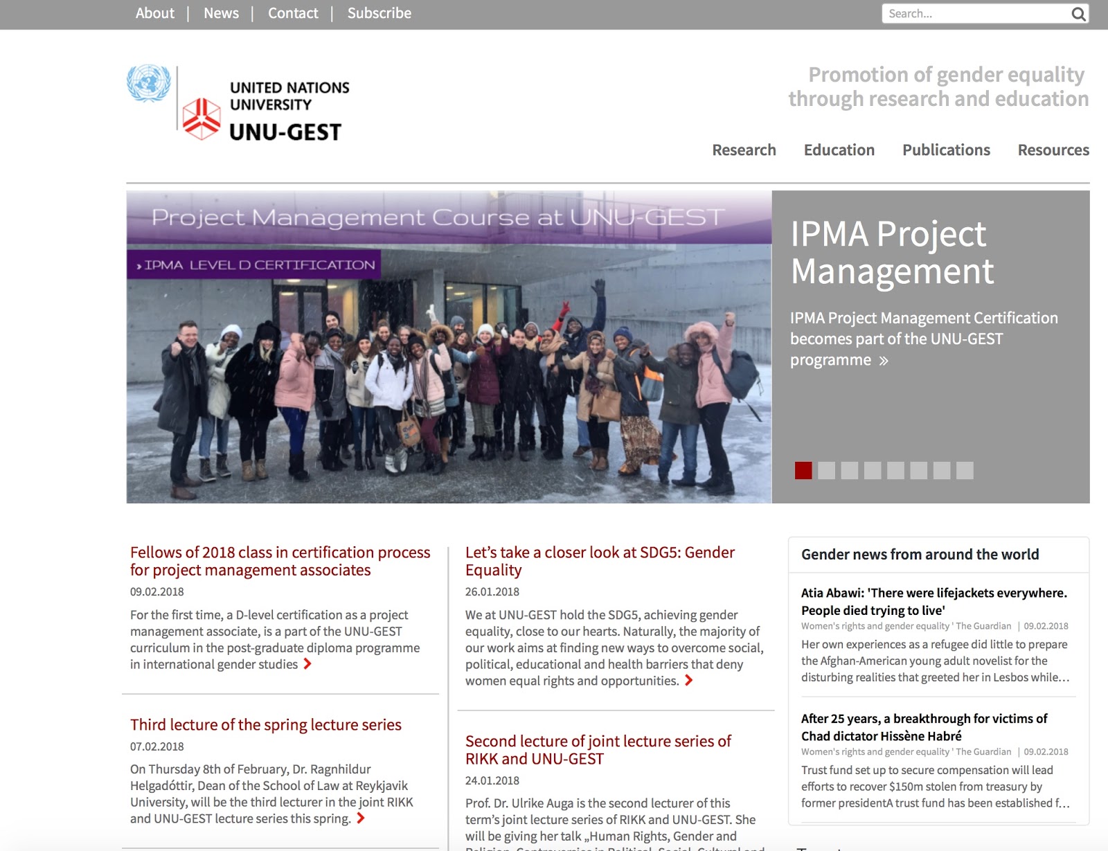 Vinna mín með nemendum Jafnréttisskóla Háskóla Sameinuðu þjóðanna fellur ágætlega saman við vinnu mína með IPMA, Alþjóðasamtökum verkefnastjórnunarfélaga. Síðan 2013 hef ég unnið að rannsóknum og samræmingu rannsókna á vegum IPMA. Það sem maður fær út úr því að vinna með IPMA er ekki síst að vinna með fólki frá öllum heimshornum, fræðast um mismunandi menningarheima og ólíkar áskoranir sem fólk glímir við, deila reynslu sinni með öðrum og læra eitthvað nýtt um sjálfan þig. Hlutverk IPMA er að efla verkefnastjórnun um allan heim, stuðla að samstarfi þjóða og nýta margbreytileika IPMA í þágu samfélaga um allan heim. Markmið Jafnréttisskóla Háskóla Sameinuðu þjóðanna er að þjálfa fólk til jafnréttisstarfa í þróunarlöndum og samfélögum sem er verið að byggja upp eftir átök. Í náminu er lögð áhersla á að stuðla að jafnrétti kynjanna og valdeflingu kvenna í anda þriðja þúsaldarmarkmiðsins, um að unnið skuli að jafnrétti kynjanna og frumkvæðisrétti kvenna. Helsti markhópur skólans er sérfræðingar sem vinna fyrir stjórnvöld og stofnanir í þróunarlöndum og löndum sem eru í endurreisn eftir átök